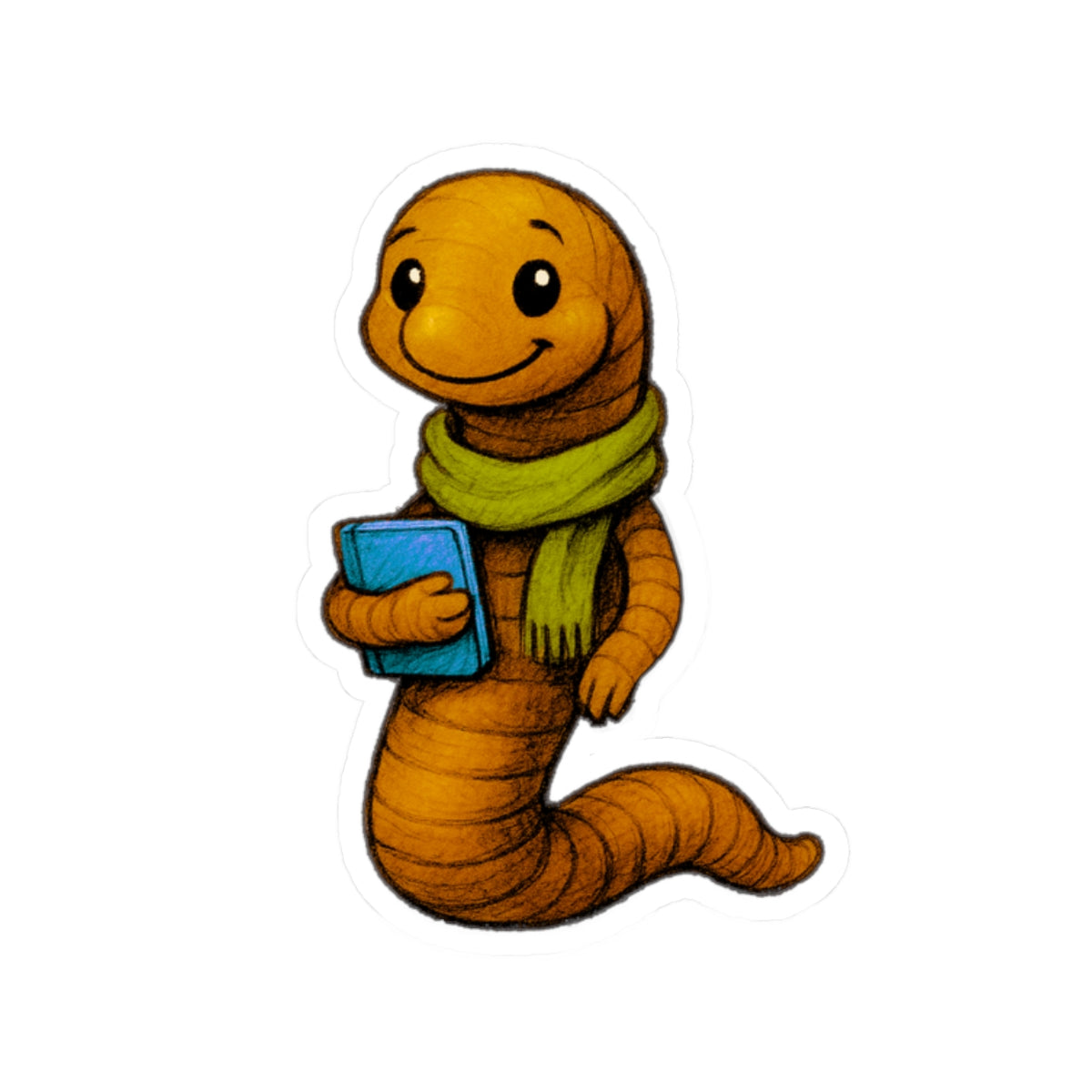 Wormie, the gentle garden guide, comes to life in glossy, vibrant sticker form. This small companion invites kids to watch the slow magic of composting and growth, sticking to journals, windows, or snackboxes where curiosity lives. Place Wormie near a nature project to remind little hands that scraps become soil, and that transformation is a quiet, everyday miracle. The artwork feels warm and friendly — a soft nudge toward patience, dirt under fingernails, and lessons learned outside.